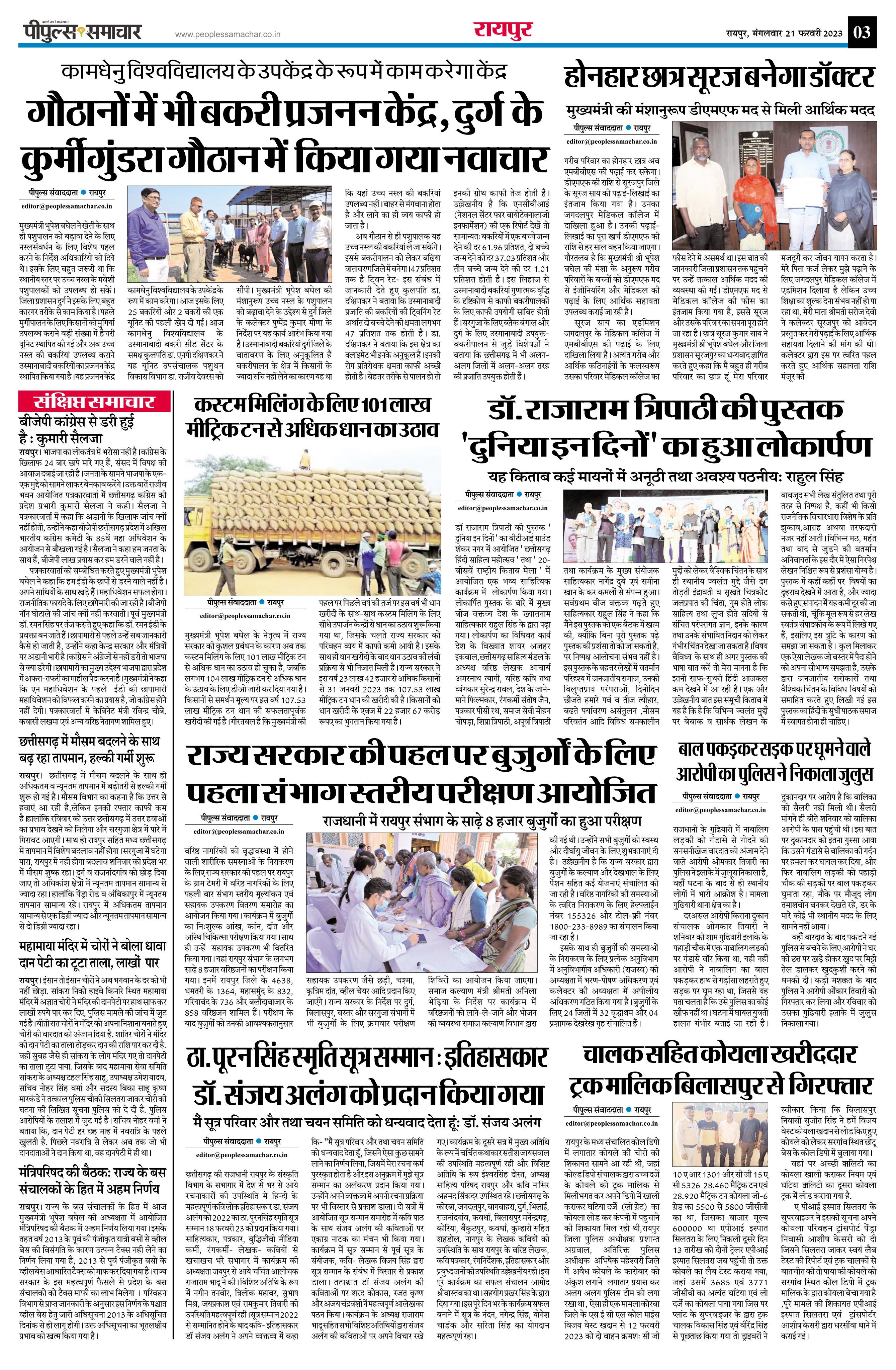 रायपुर Page: 3 February 21, 2023 << First << 3 >> Last >> Page 1Page 2Page 3Page 4Page 5Page 6Page 7Page 8 × रायपुर << First << 3 >> Last >> page1page2page3page4page5page6page7page8 page3