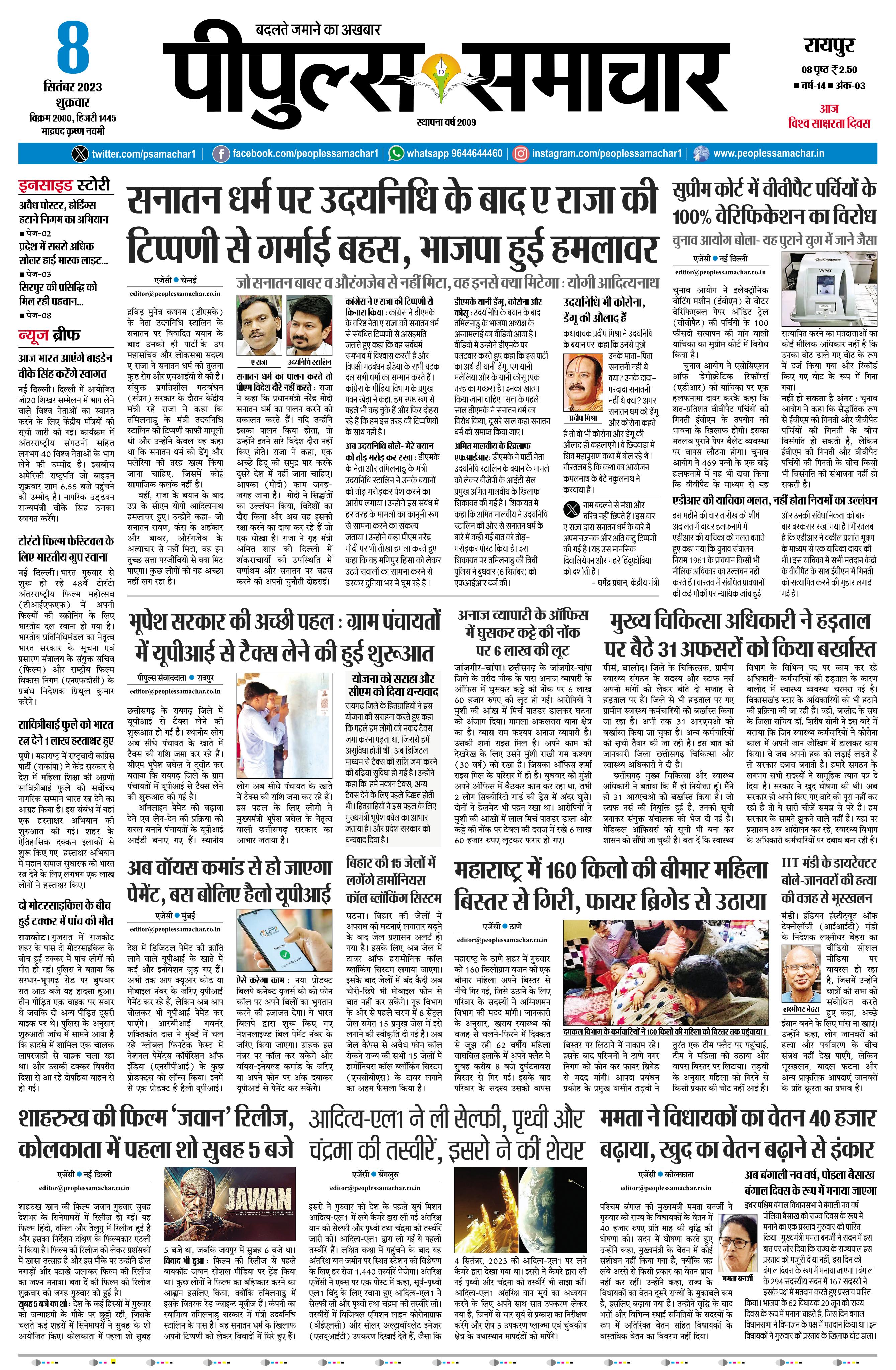 रायपुर September 08, 2023 << First << 1 >> Last >> Page 1Page 2Page 3Page 4Page 5Page 6Page 7Page 8 × रायपुर << First << 1 >> Last >> Page1Page2Page3Page4Page5Page6Page7Page8 Page1