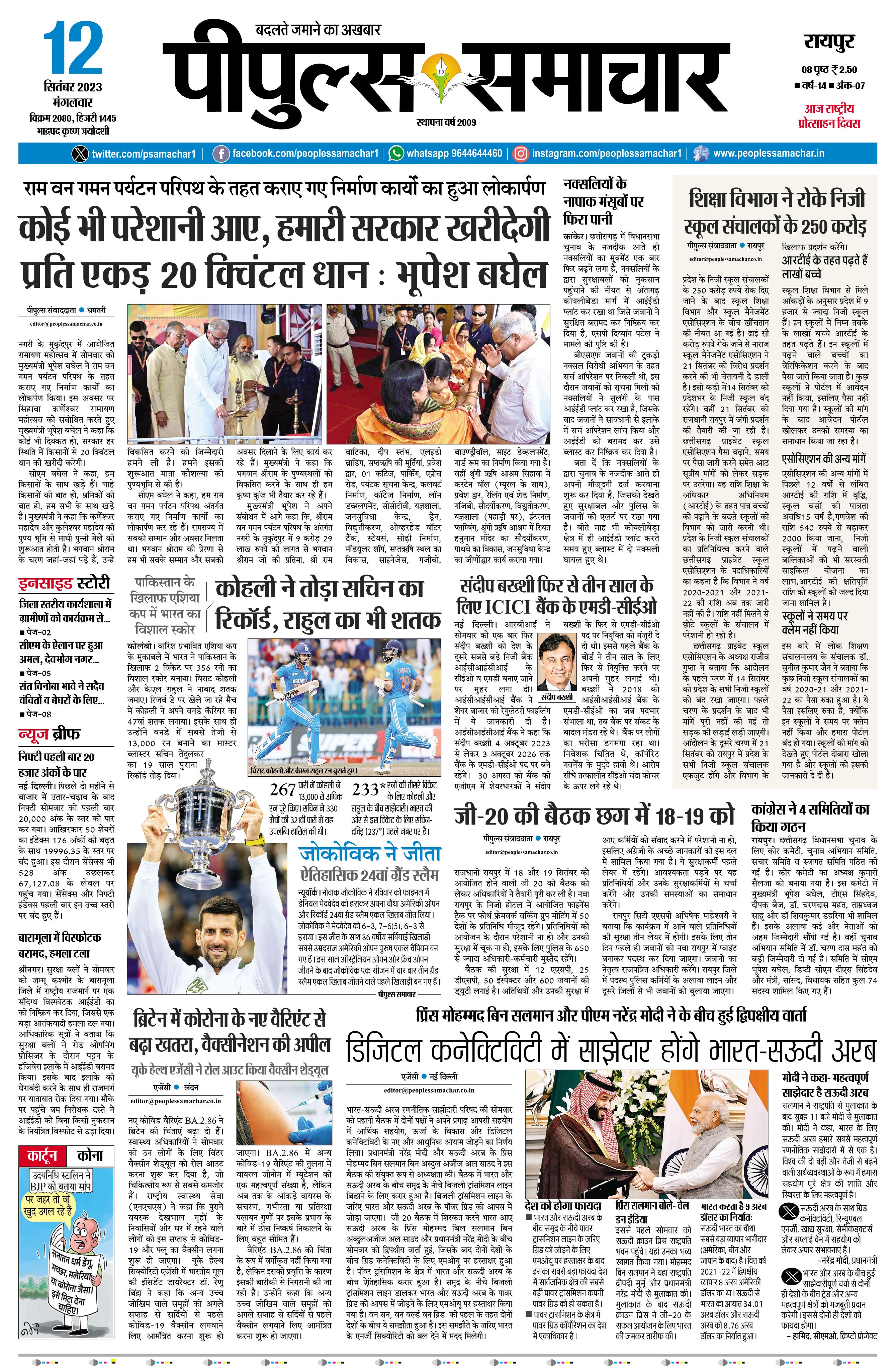 रायपुर September 12, 2023 << First << 1 >> Last >> Page 1Page 2Page 3Page 4Page 5Page 6Page 7Page 8 × रायपुर << First << 1 >> Last >> Page1Page2Page3Page4Page5Page6Page7Page8 Page1