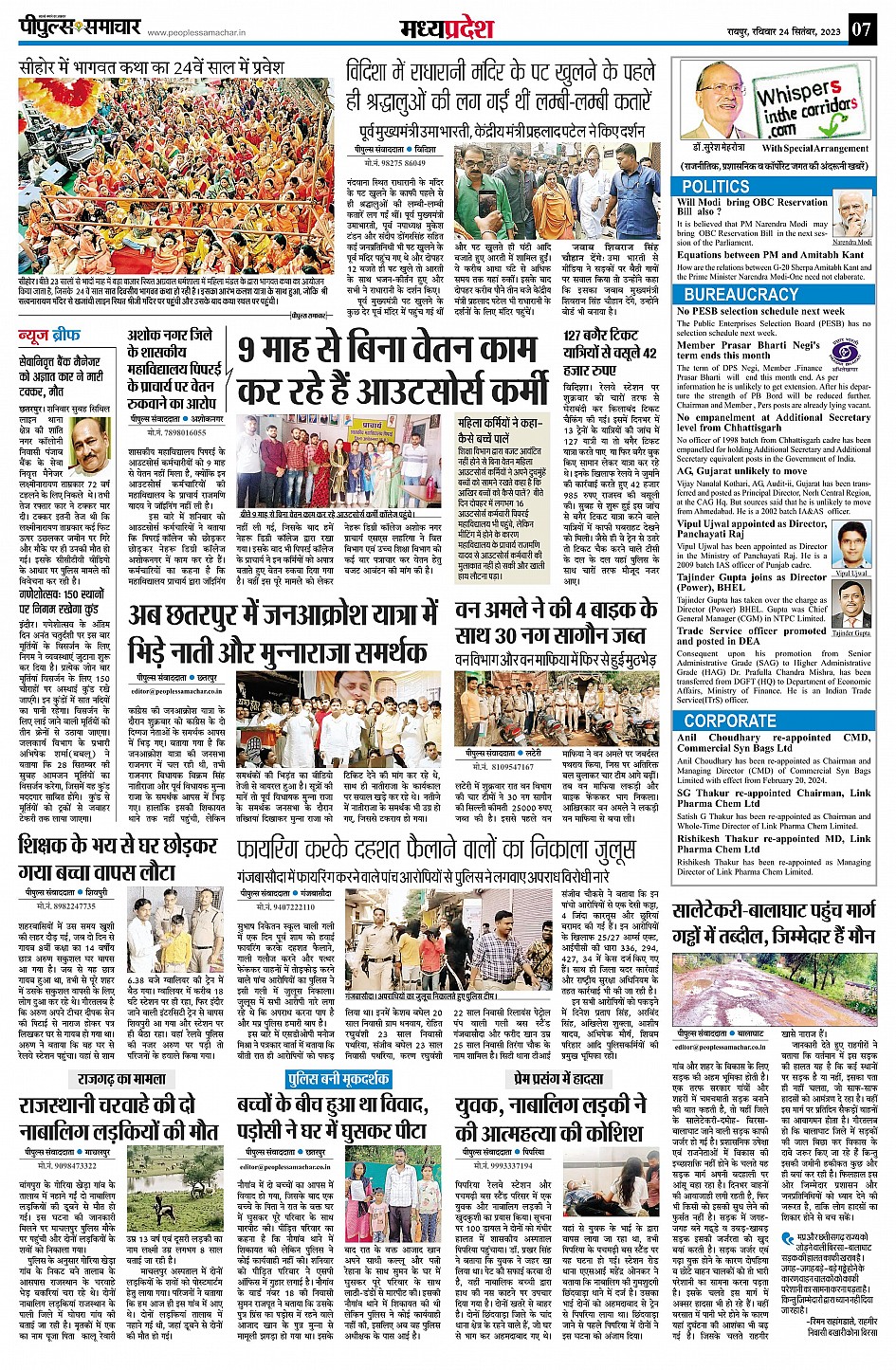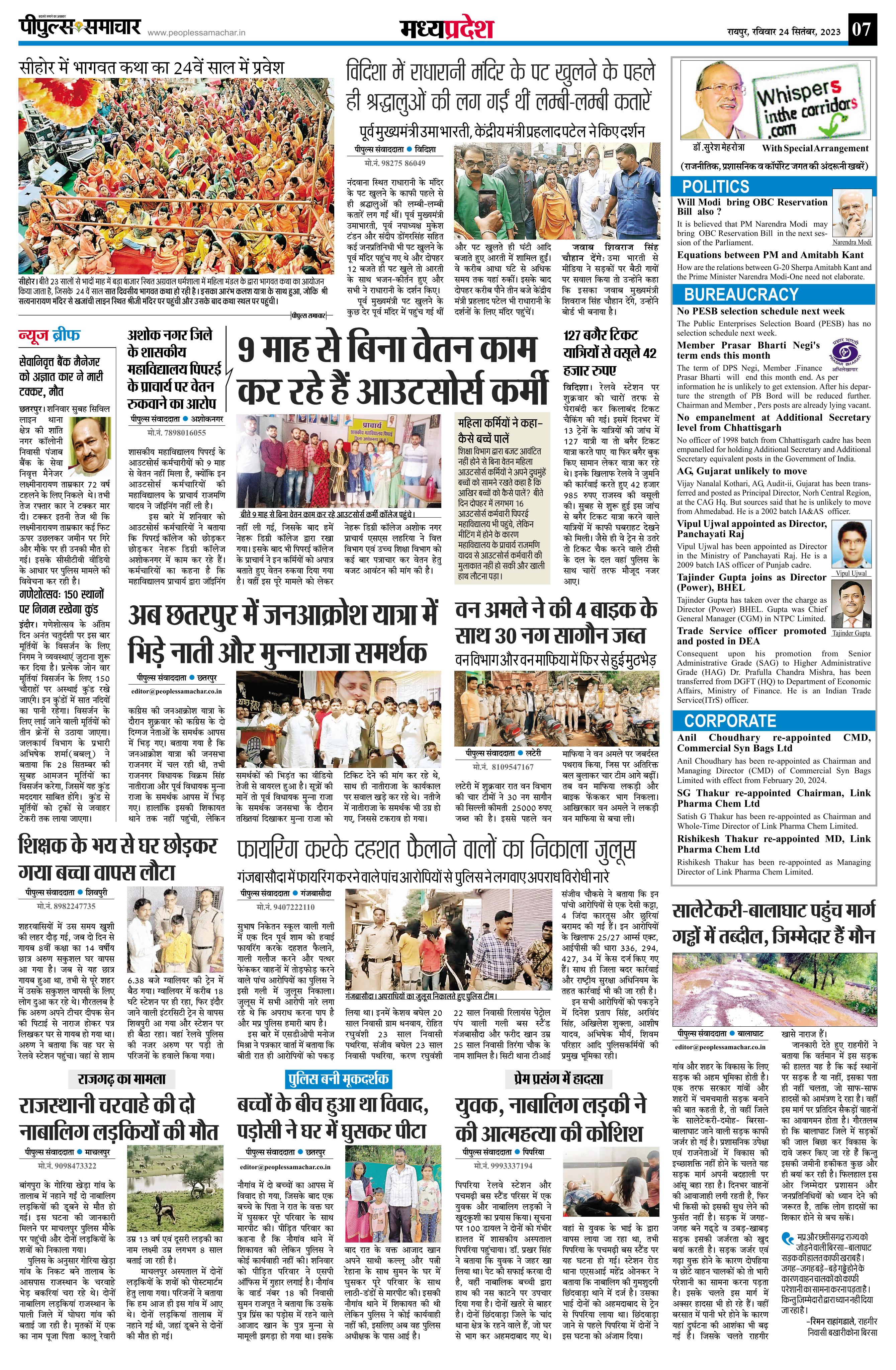 रायपुर Page: 7 September 24, 2023 << First << 7 >> Last >> Page 1Page 2Page 3Page 4Page 5Page 6Page 7Page 8 × रायपुर << First << 7 >> Last >> Page1Page2Page3Page4Page5Page6Page7Page8 Page7