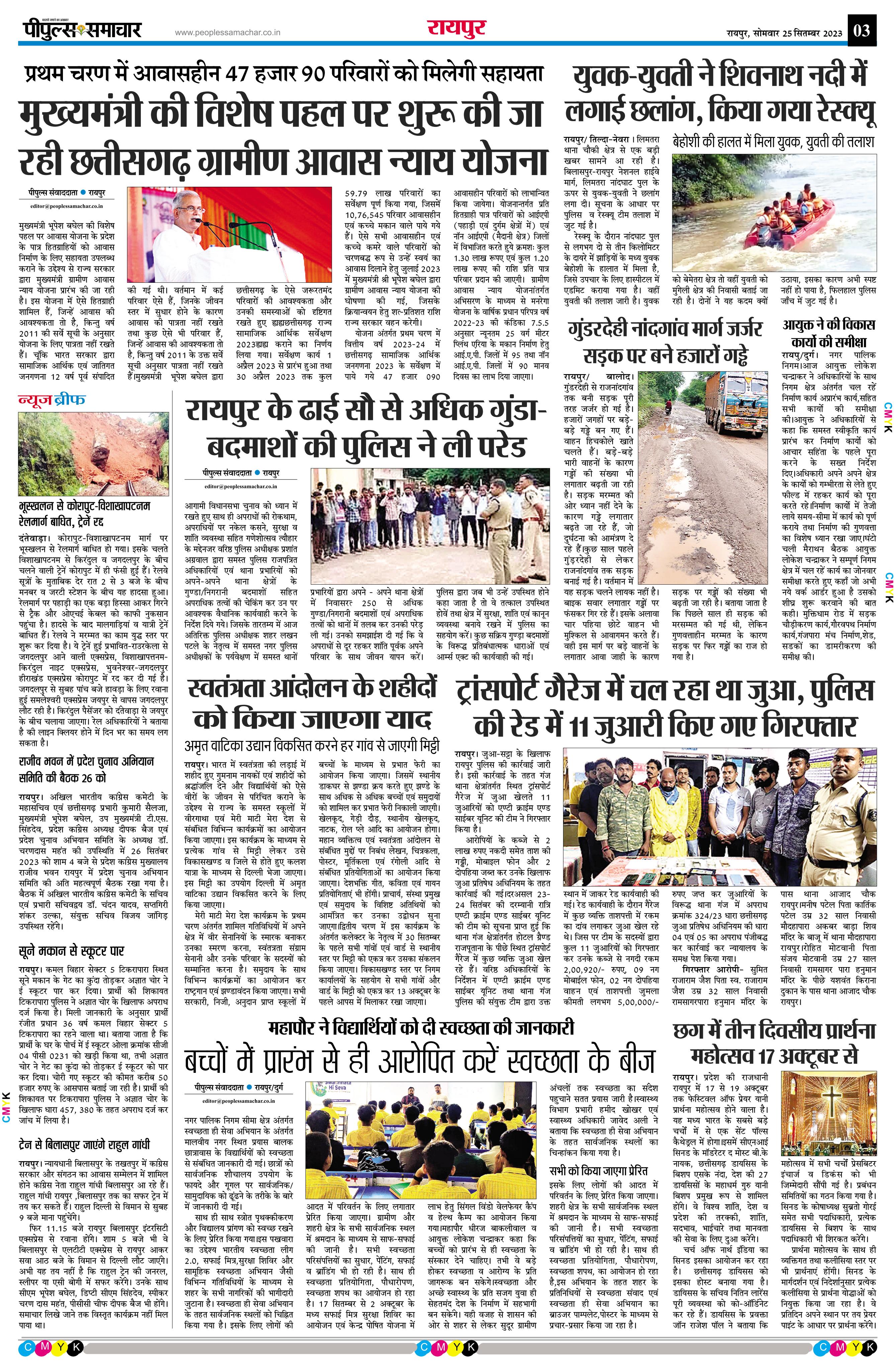 रायपुर Page: 3 September 25, 2023 << First << 3 >> Last >> Page 1Page 2Page 3Page 4Page 5Page 6Page 7Page 8 × रायपुर << First << 3 >> Last >> Page1Page2Page3Page4Page5Page6Page7Page8 Page3