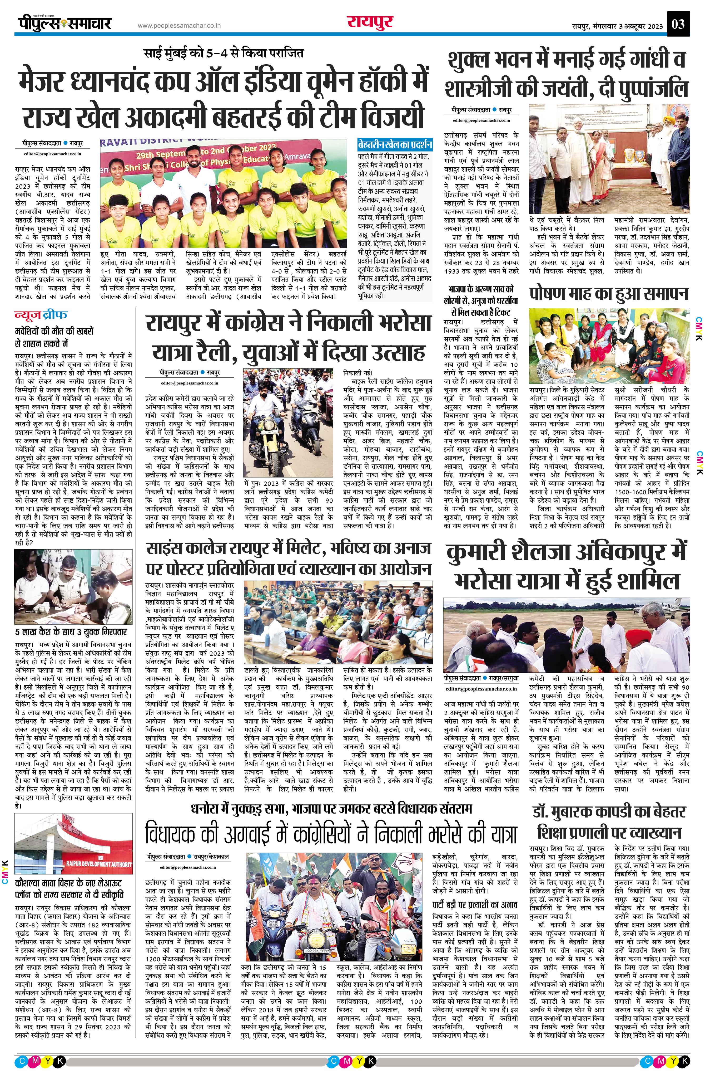 रायपुर Page: 3 October 03, 2023 << First << 3 >> Last >> Page 1Page 2Page 3Page 4Page 5Page 6Page 7Page 8 × रायपुर << First << 3 >> Last >> Page1Page2Page3Page4Page5Page6Page7Page8 Page3