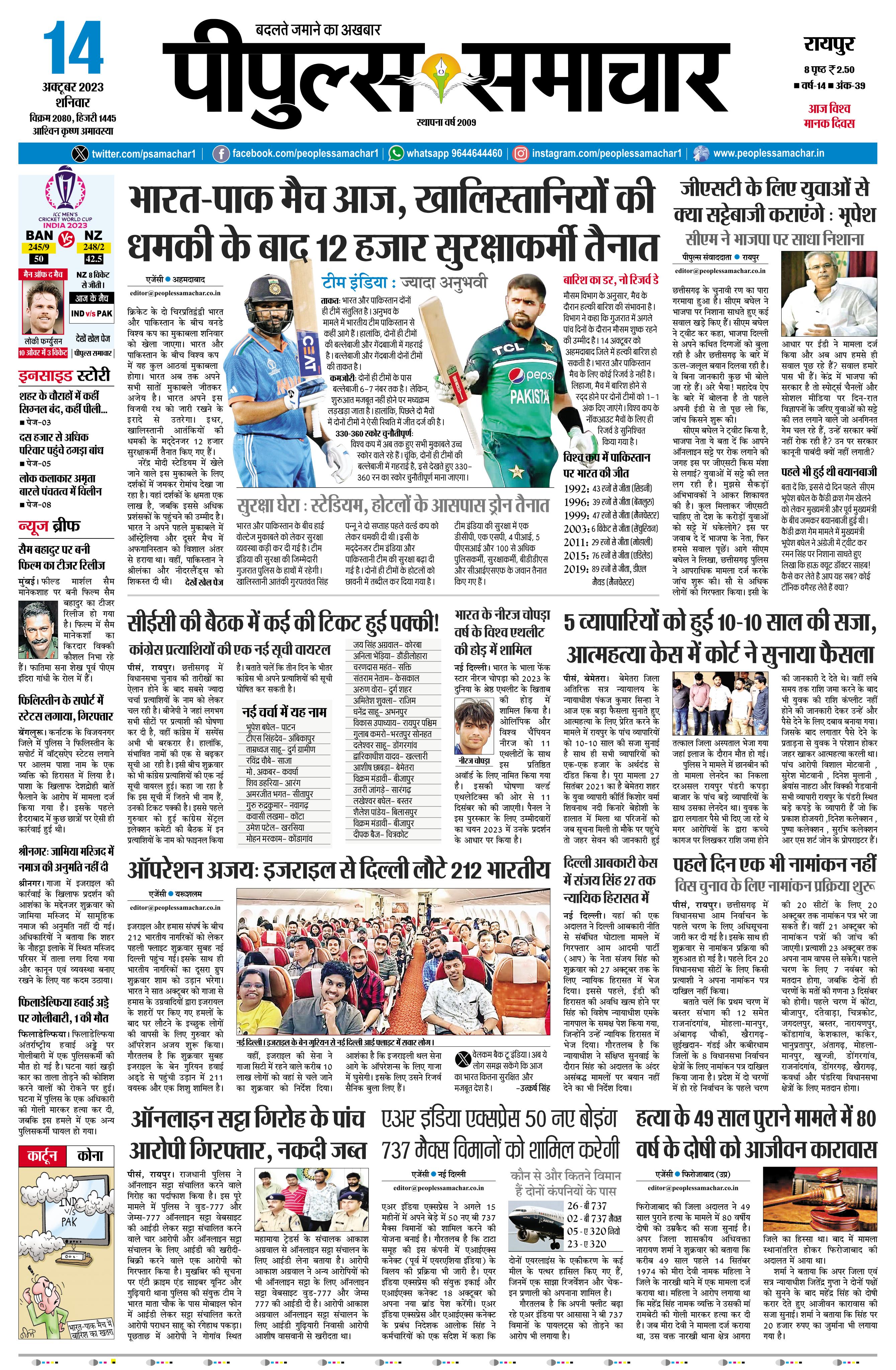 रायपुर October 14, 2023 << First << 1 >> Last >> Page 1Page 2Page 3Page 4Page 5Page 6Page 7Page 8 × रायपुर << First << 1 >> Last >> page1page2page3page4page5page6page7page8 page1