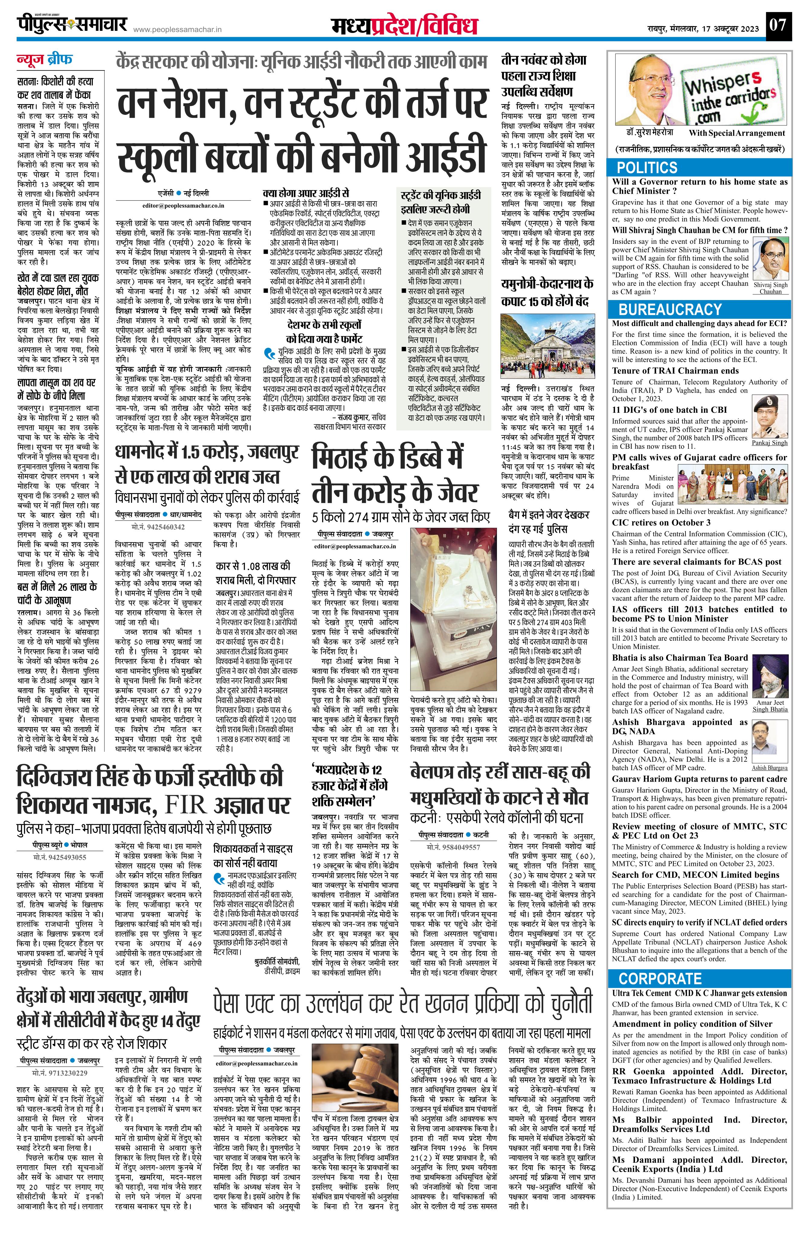 रायपुर Page: 7 October 17, 2023 << First << 7 >> Last >> Page 1Page 2Page 3Page 4Page 5Page 6Page 7Page 8 × रायपुर << First << 7 >> Last >> Page1Page2Page3Page4Page5Page6Page7Page8 Page7
