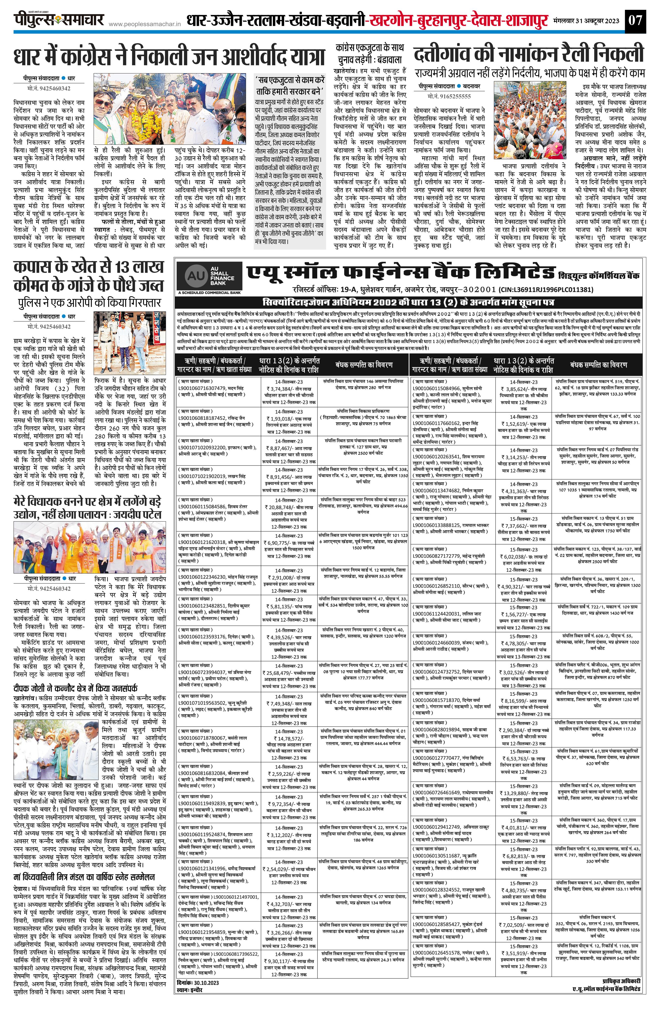 रतलाम सिटी Page: 7 October 31, 2023 << First << 7 >> Last >> Page 1Page 2Page 3Page 4Page 5Page 6Page 7Page 8 × रतलाम सिटी << First << 7 >> Last >> Page1Page2Page3Page4Page5Page6Page7Page8 Page7