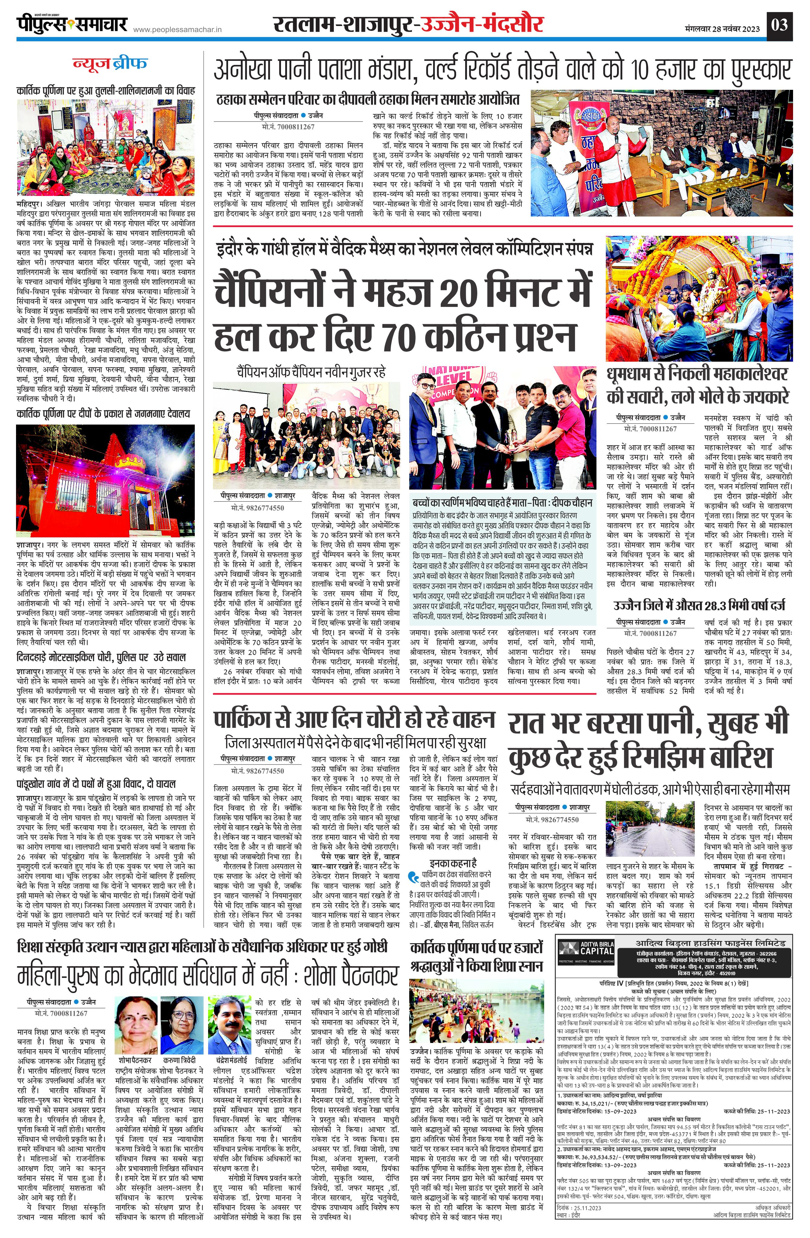 रतलाम सिटी Page: 3 November 28, 2023 << First << 3 >> Last >> Page 1Page 2Page 3Page 4Page 5Page 6Page 7Page 8 × रतलाम सिटी << First << 3 >> Last >> page1page2page3page4page5page6page7page8 page3