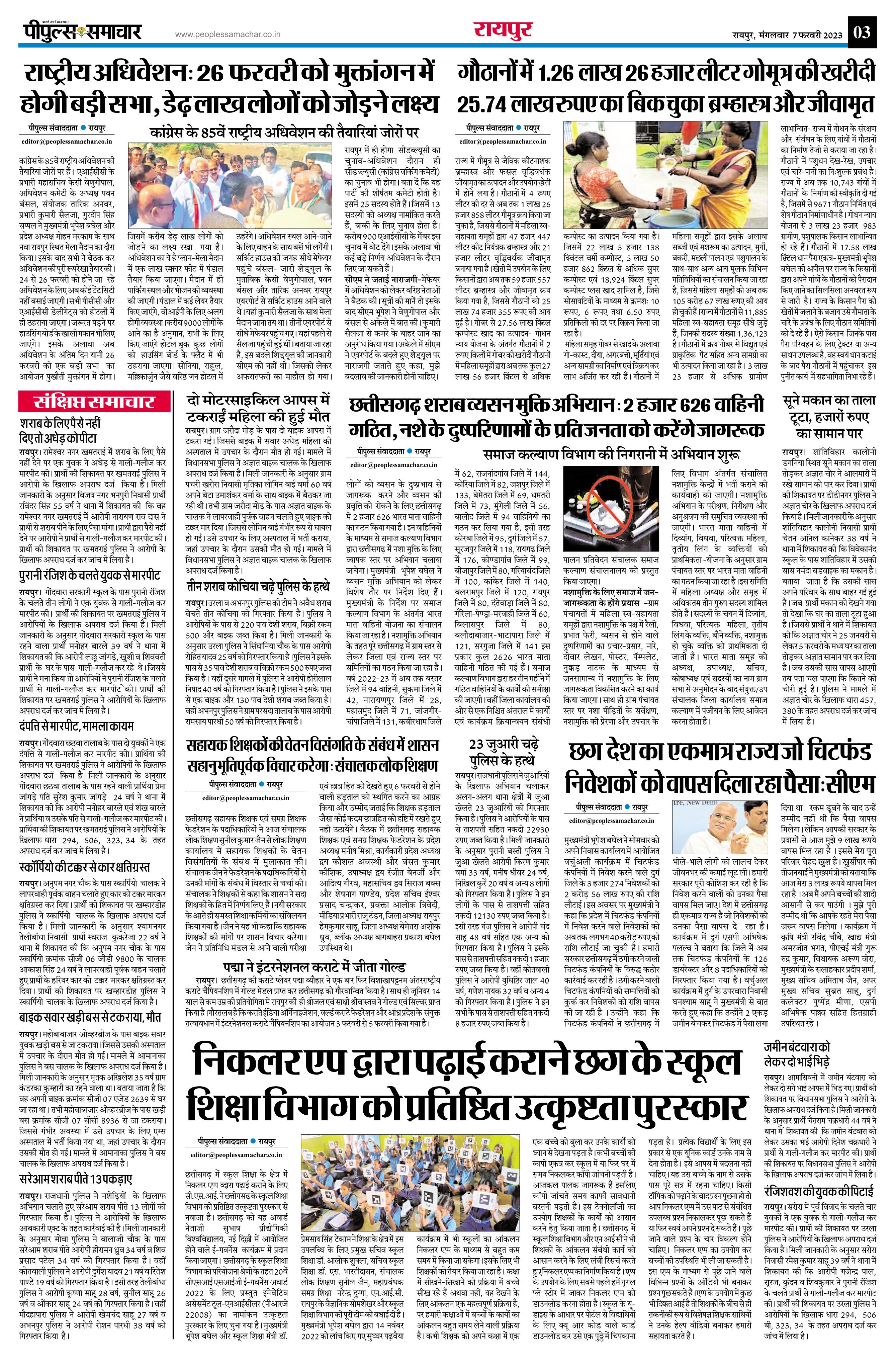 रायपुर Page: 3 February 07, 2023 << First << 3 >> Last >> Page 1Page 2Page 3Page 4Page 5Page 6Page 7Page 8 × रायपुर << First << 3 >> Last >> page1page2page3page4page5page6page7page8 page3