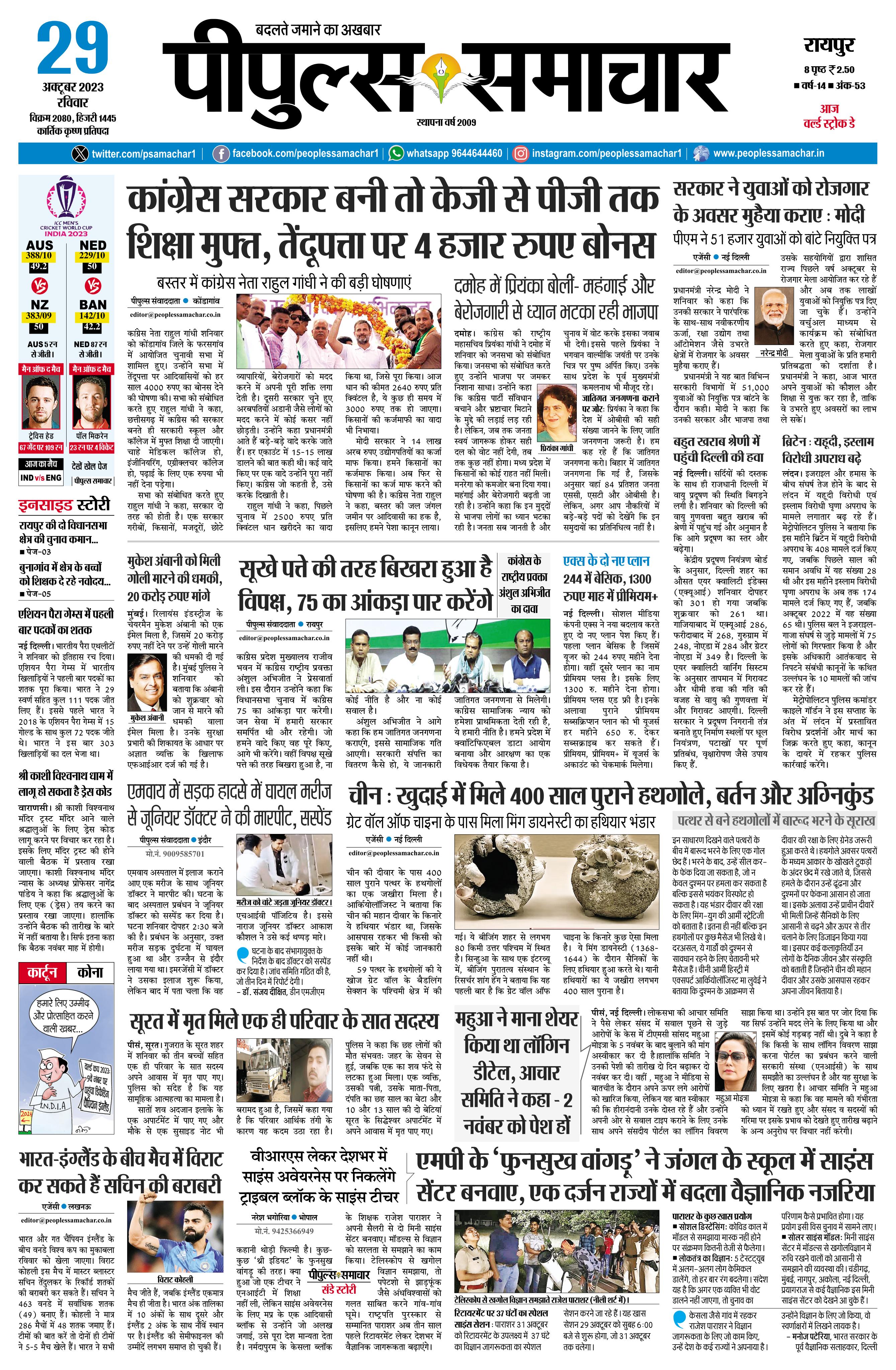 रायपुर October 29, 2023 << First << 1 >> Last >> Page 1Page 2Page 3Page 4Page 5Page 6Page 7Page 8 × रायपुर << First << 1 >> Last >> Page1Page2Page3Page4Page5Page6Page7Page8 Page1