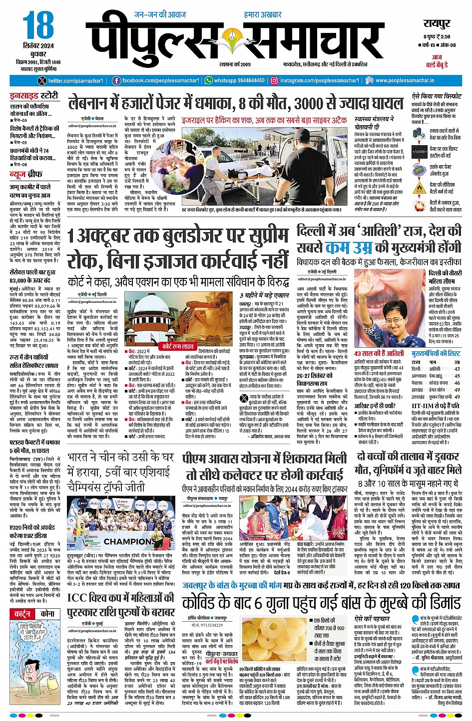 रायपुर September 18, 2024 << First << 1 >> Last >> Page 1Page 2Page 3Page 4Page 5Page 6Page 7Page 8Page 9 × रायपुर << First << 1 >> Last >> Page1Page2Page3Page4Page5Page6Page7Page8Page9 Page1