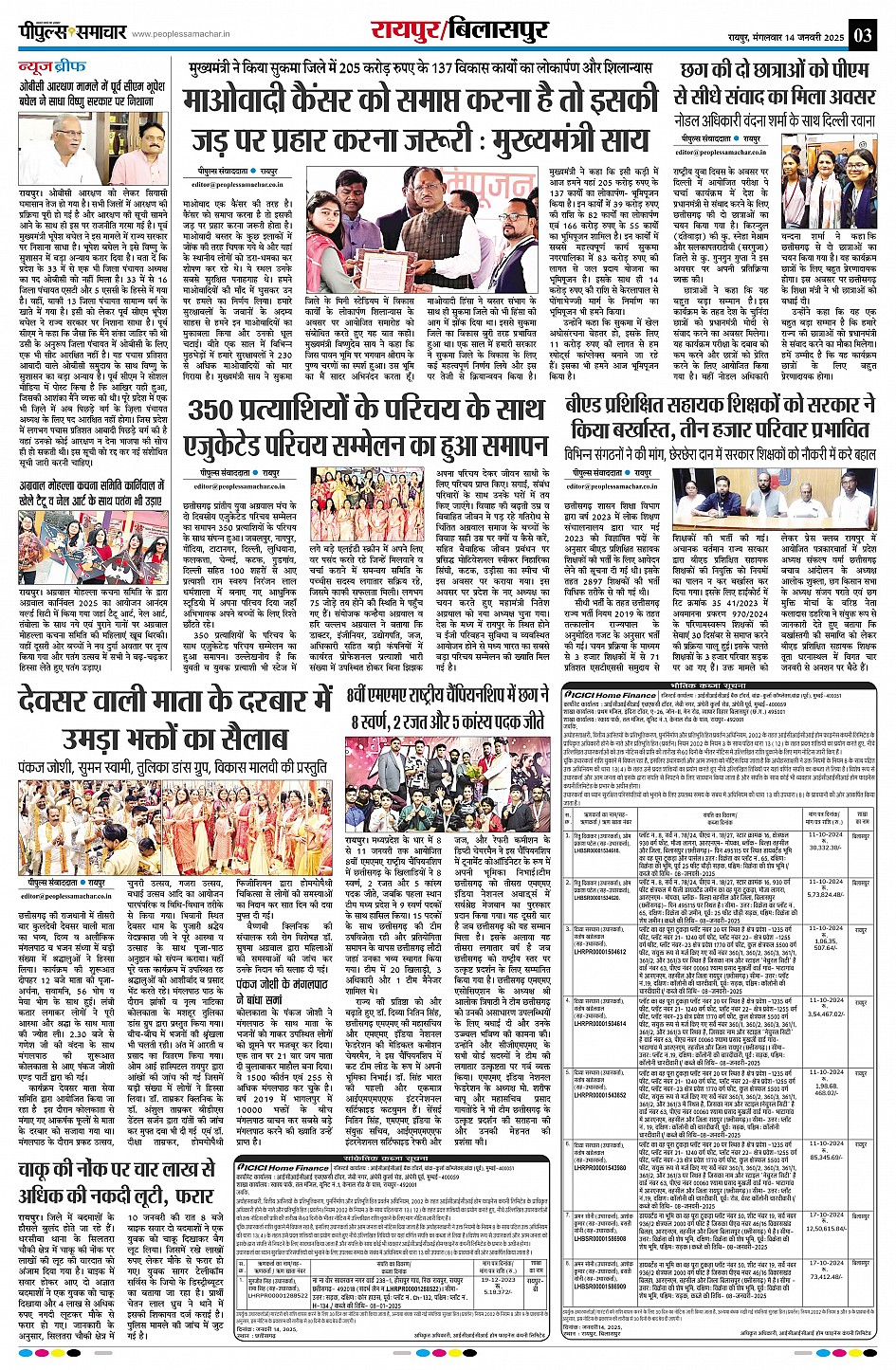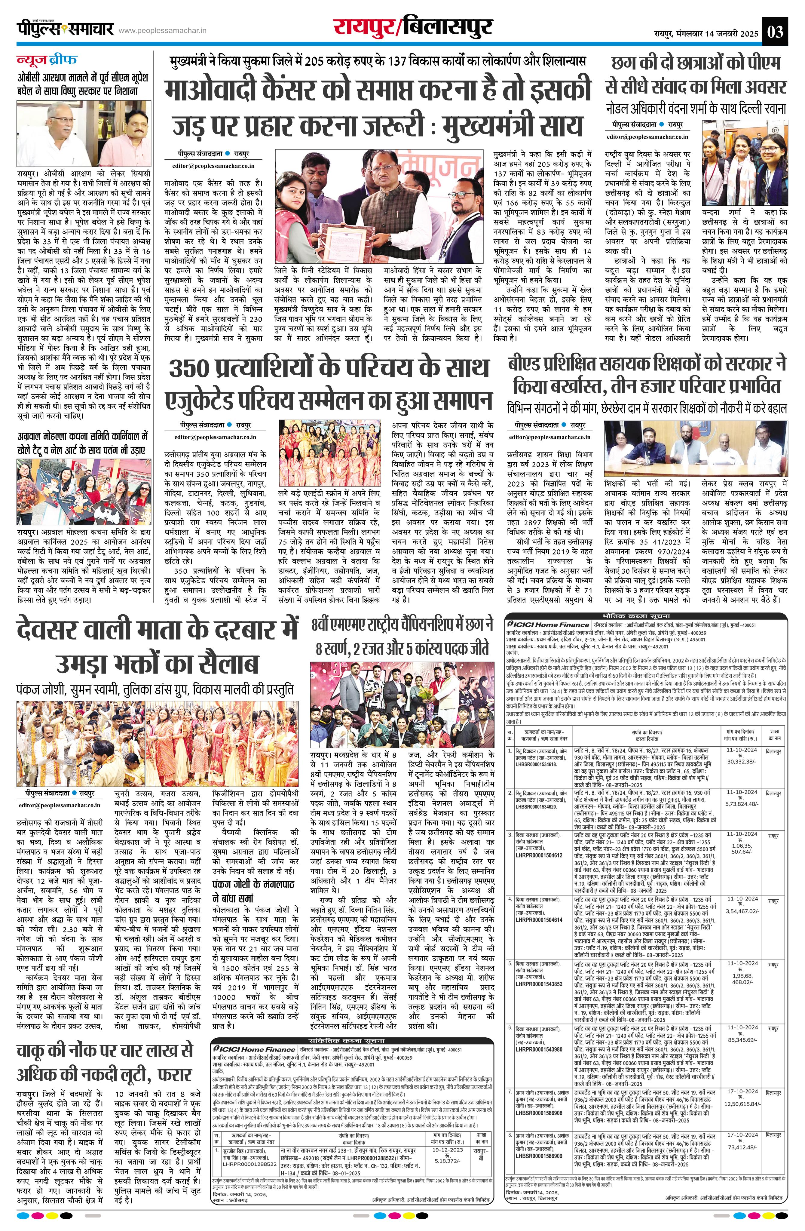 रायपुर Page: 3 January 14, 2025 << First << 3 >> Last >> Page 1Page 2Page 3Page 4Page 5Page 6Page 7Page 8Page 9 × रायपुर << First << 3 >> Last >> Page1Page2Page3Page4Page5Page6Page7Page8Page9 Page3