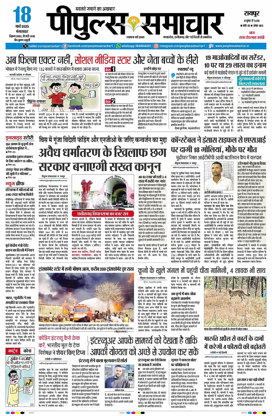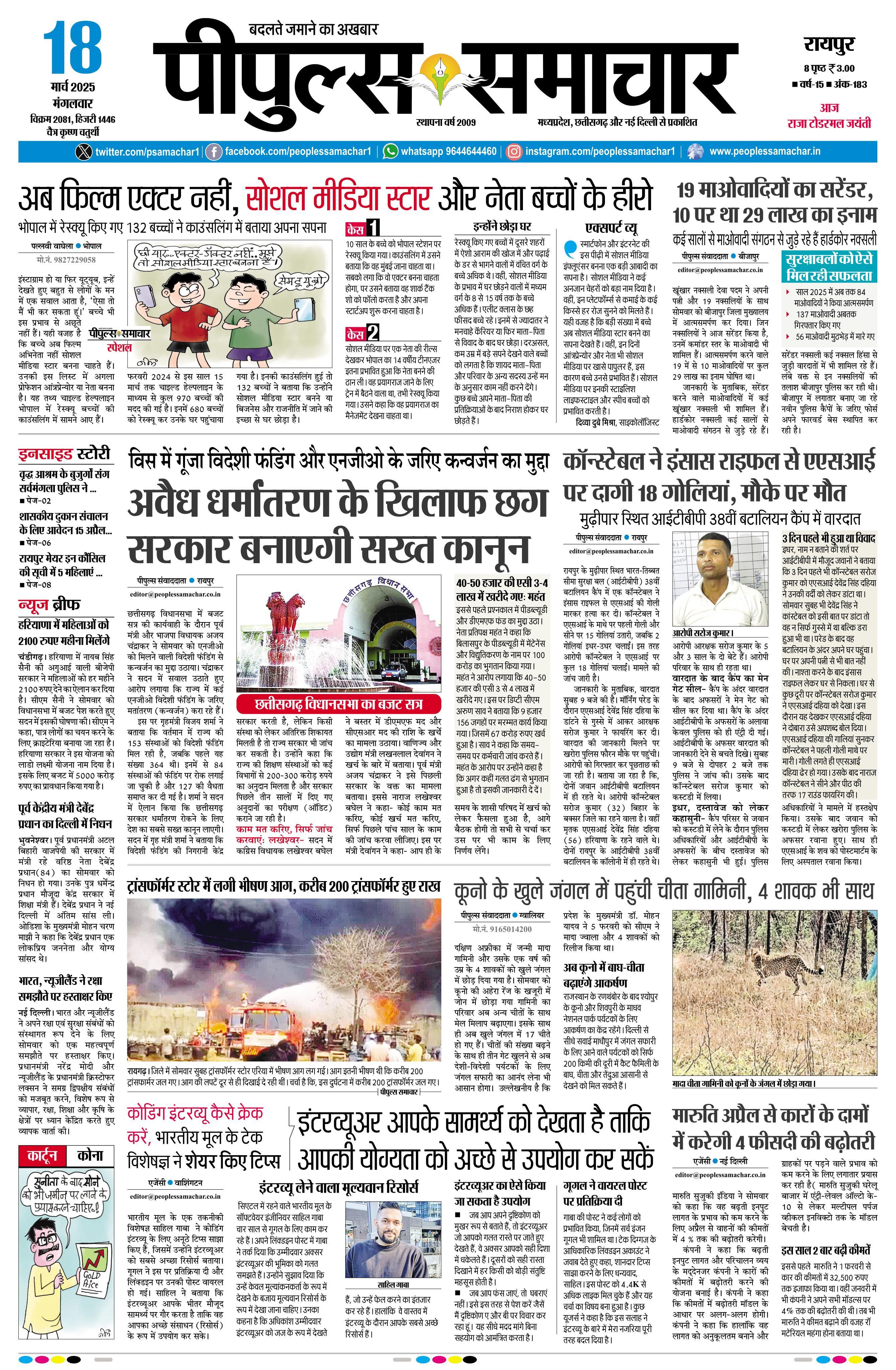 रायपुर March 18, 2025 << First << 1 >> Last >> Page 1Page 2Page 3Page 4Page 5Page 6Page 7Page 8Page 9 × रायपुर << First << 1 >> Last >> Page1Page2Page3Page4Page5Page6Page7Page8Page9 Page1