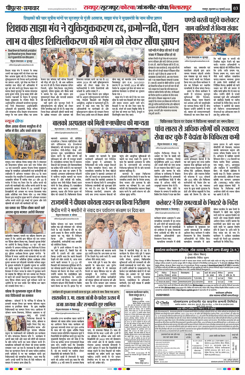 रायपुर Page: 3 July 02, 2025 << First << 3 >> Last >> Page 1Page 2Page 3Page 4Page 5Page 6Page 7Page 8Page 9 × रायपुर << First << 3 >> Last >> Page1Page2Page3Page4Page5Page6Page7Page8Page9 Page3