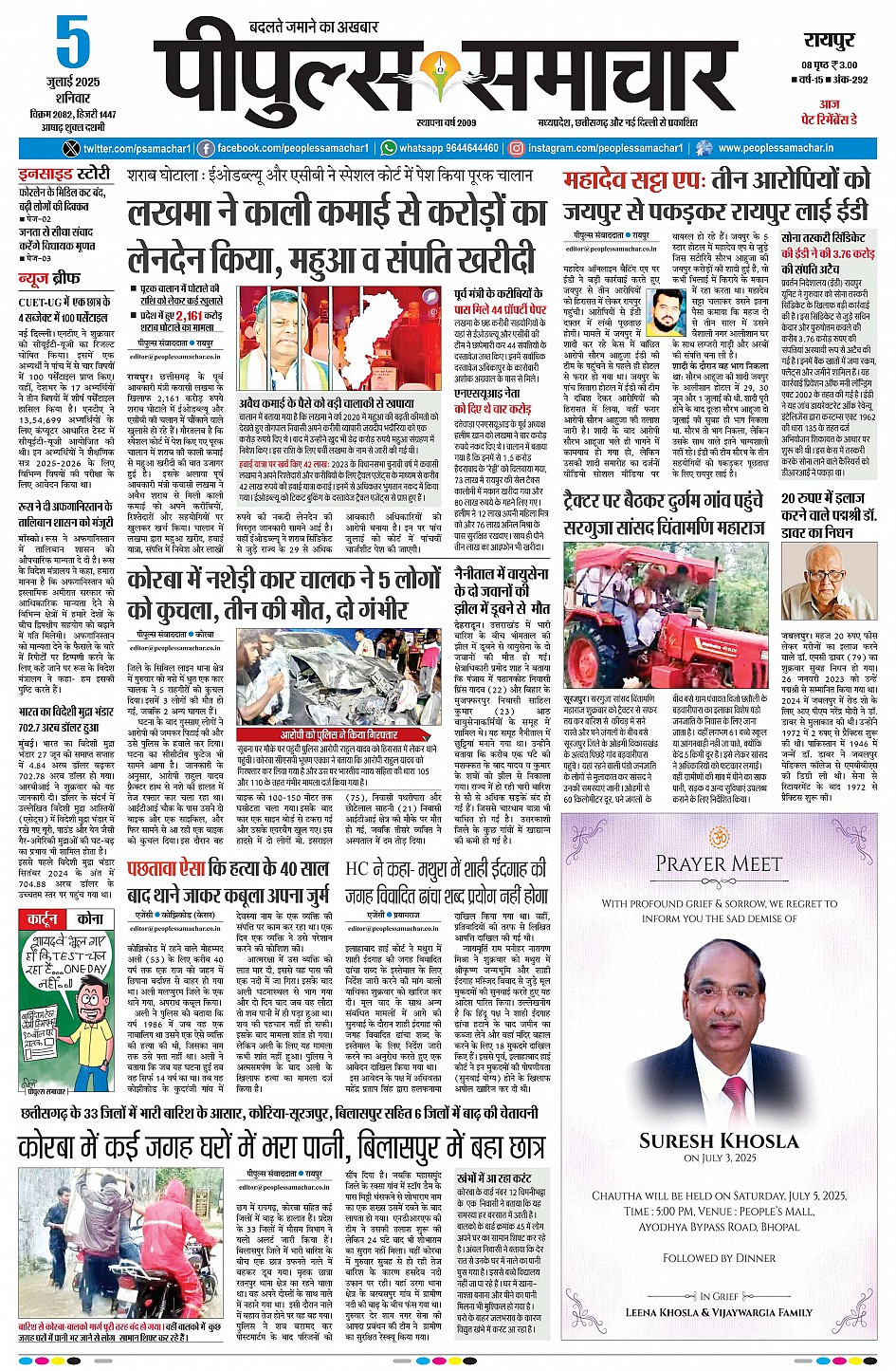 रायपुर July 05, 2025 << First << 1 >> Last >> Page 1Page 2Page 3Page 4Page 5Page 6Page 7Page 8Page 9 × रायपुर << First << 1 >> Last >> page1page2page3page4page5page6page7page8page9 page1