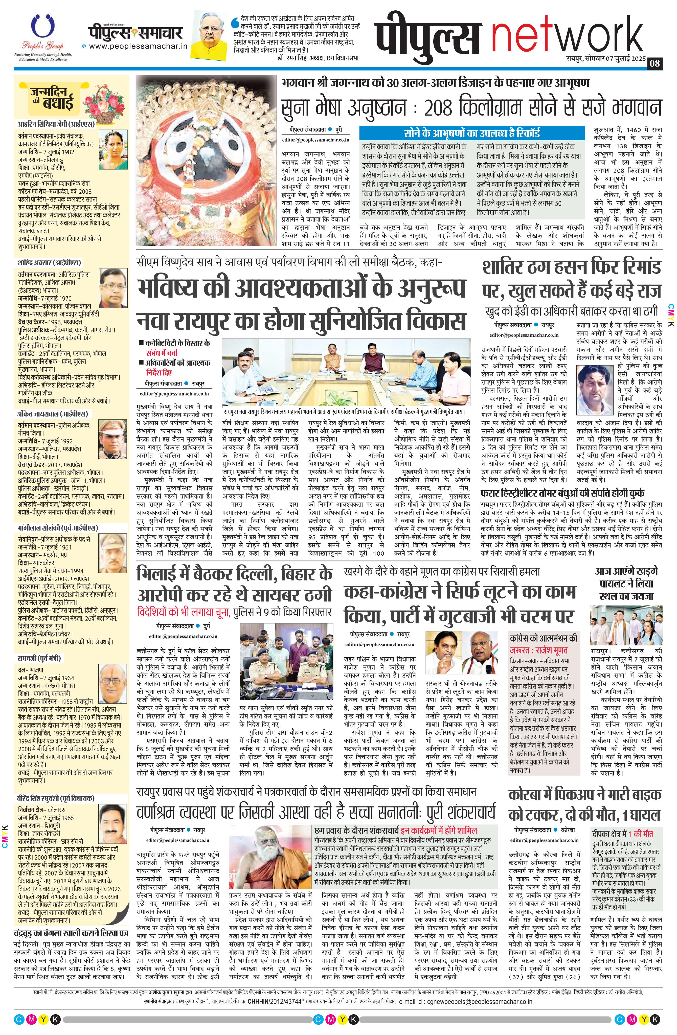 रायपुर Page: 8 July 07, 2025 << First << 8 >> Last >> Page 1Page 2Page 3Page 4Page 5Page 6Page 7Page 8Page 9 × रायपुर << First << 8 >> Last >> Page1Page2Page3Page4Page5Page6Page7Page8Page9 Page8