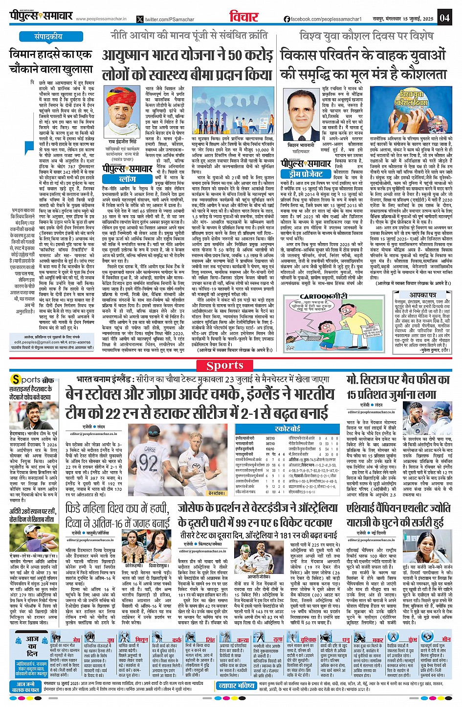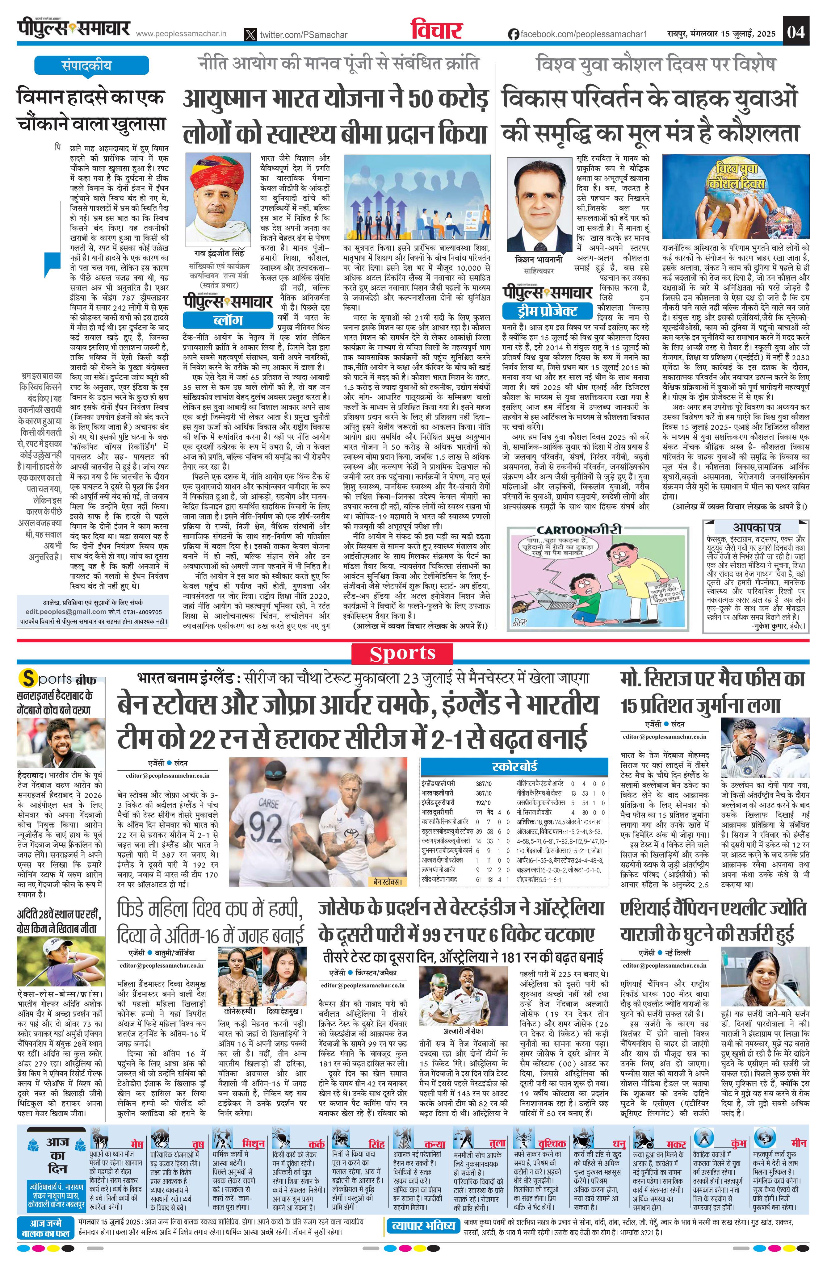 रायपुर Page: 4 July 15, 2025 << First << 4 >> Last >> Page 1Page 2Page 3Page 4Page 5Page 6Page 7Page 8 × रायपुर << First << 4 >> Last >> page1page2page3page4page5page6page7page8 page4
