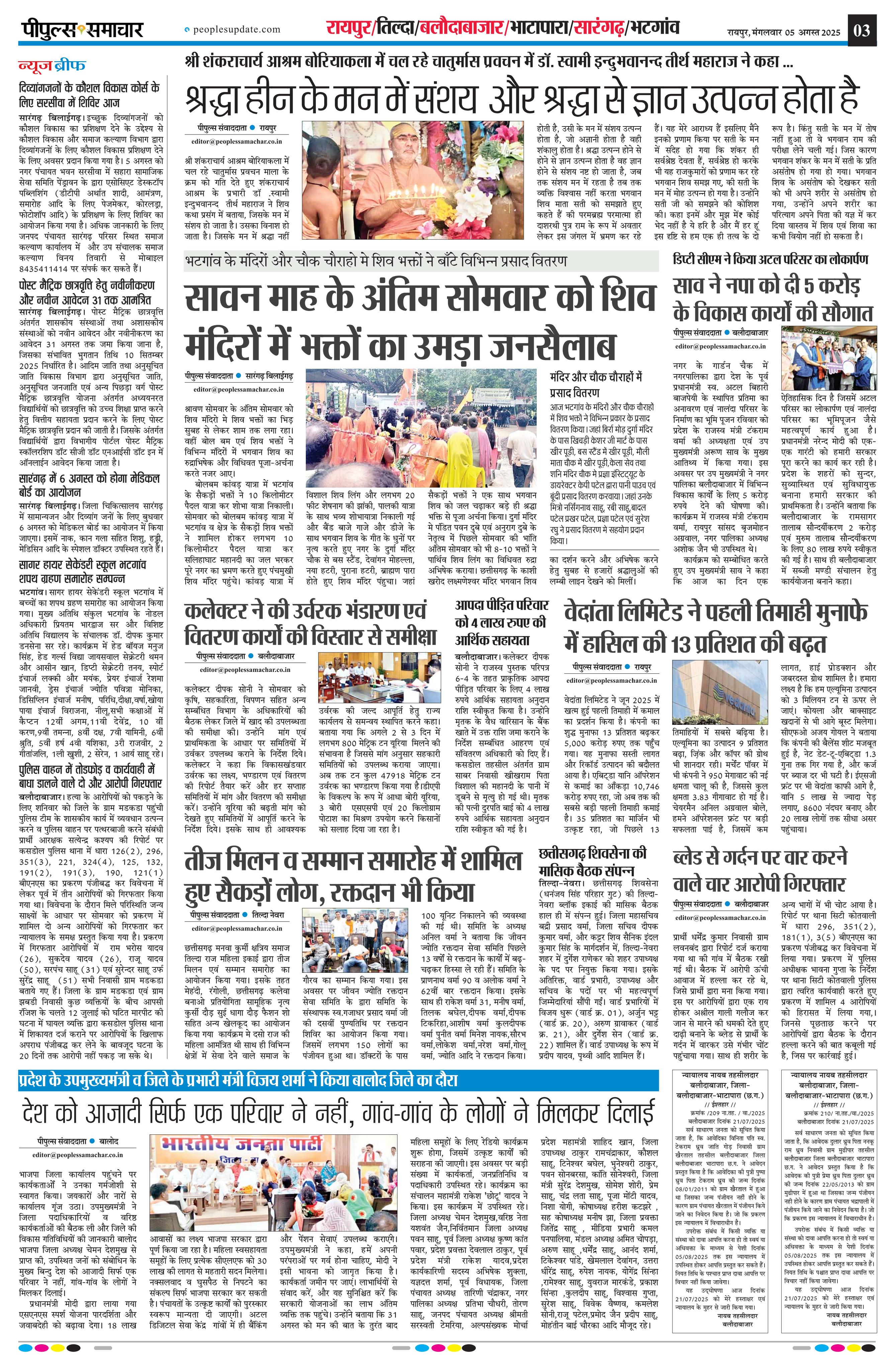 रायपुर Page: 3 August 05, 2025 << First << 3 >> Last >> Page 1Page 2Page 3Page 4Page 5Page 6Page 7Page 8Page 9 × रायपुर << First << 3 >> Last >> Page1Page2Page3Page4Page5Page6Page7Page8Page9 Page3