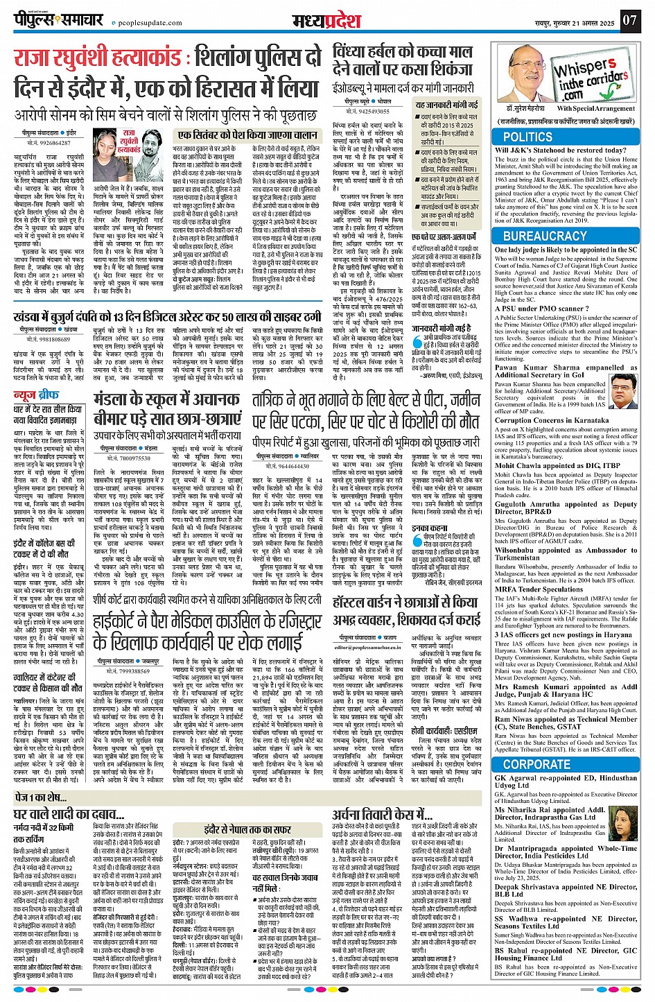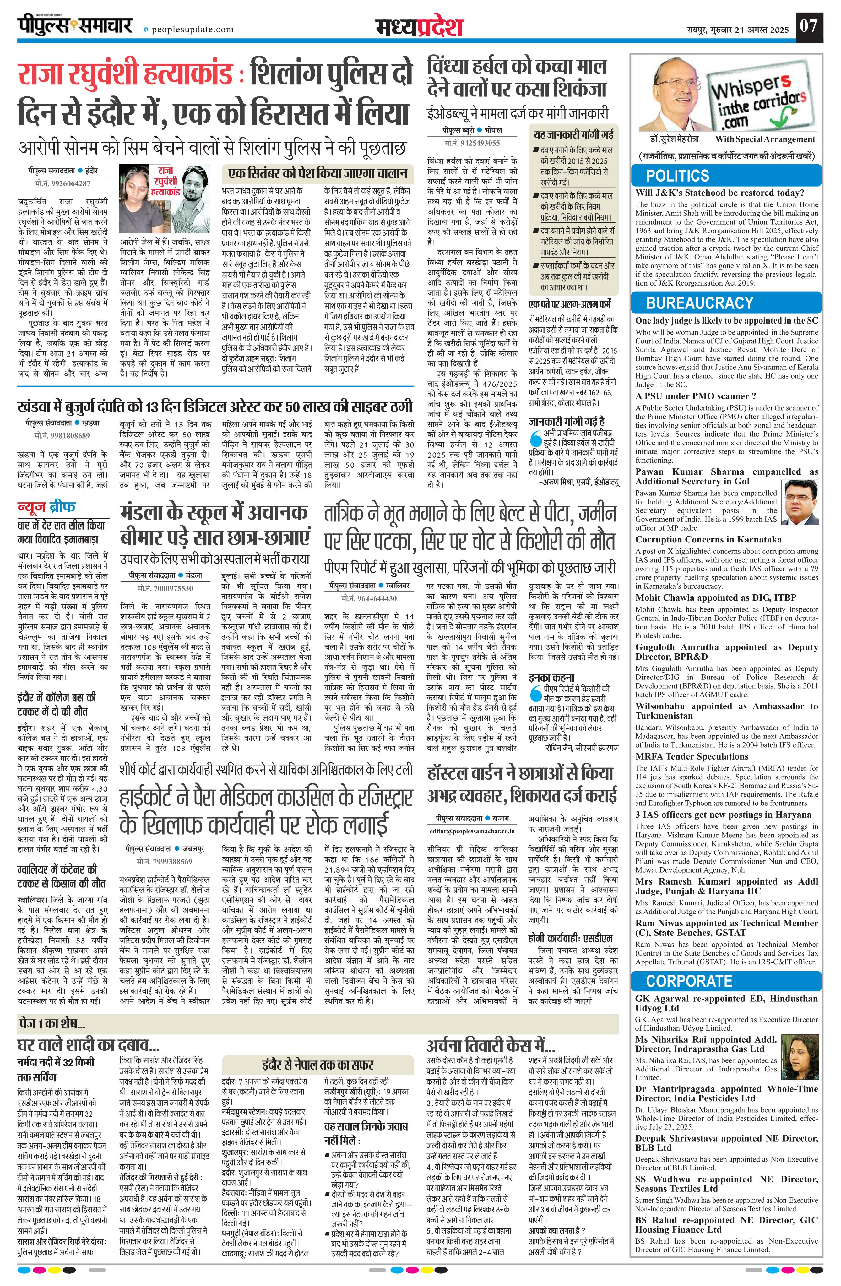 रायपुर Page: 7 August 21, 2025 << First << 7 >> Last >> Page 1Page 2Page 3Page 4Page 5Page 6Page 7Page 8Page 9 × रायपुर << First << 7 >> Last >> Page1Page2Page3Page4Page5Page6Page7Page8Page9 Page7