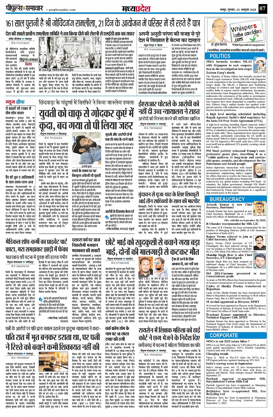 रायपुर Page: 7 October 02, 2025 << First << 7 >> Last >> Page 1Page 2Page 3Page 4Page 5Page 6Page 7Page 8Page 9 × रायपुर << First << 7 >> Last >> Page1Page2Page3Page4Page5Page6Page7Page8Page9 Page7
