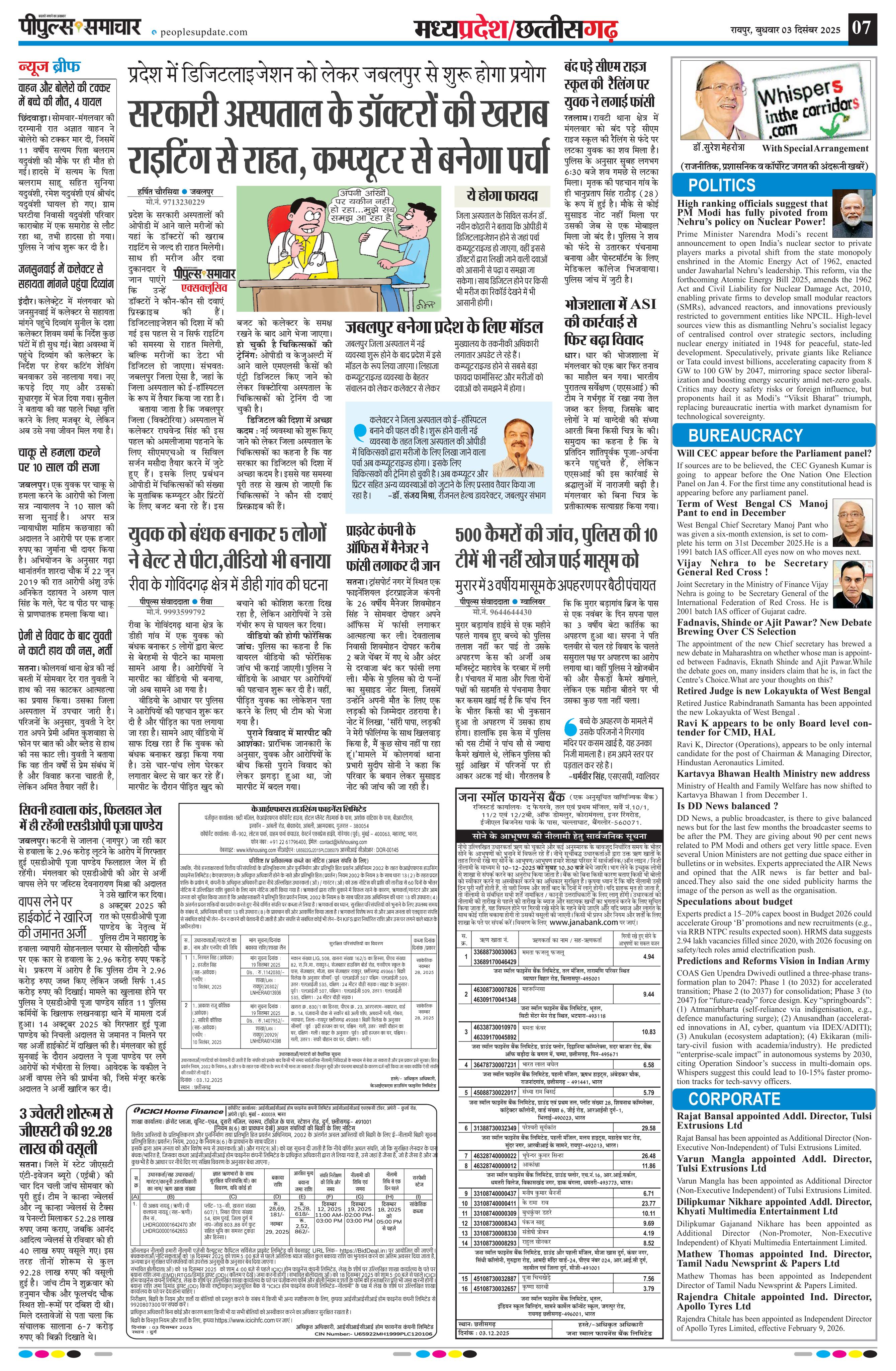 रायपुर Page: 7 December 03, 2025 << First << 7 >> Last >> Page 1Page 2Page 3Page 4Page 5Page 6Page 7Page 8Page 9 × रायपुर << First << 7 >> Last >> Page1Page2Page3Page4Page5Page6Page7Page8Page9 Page7