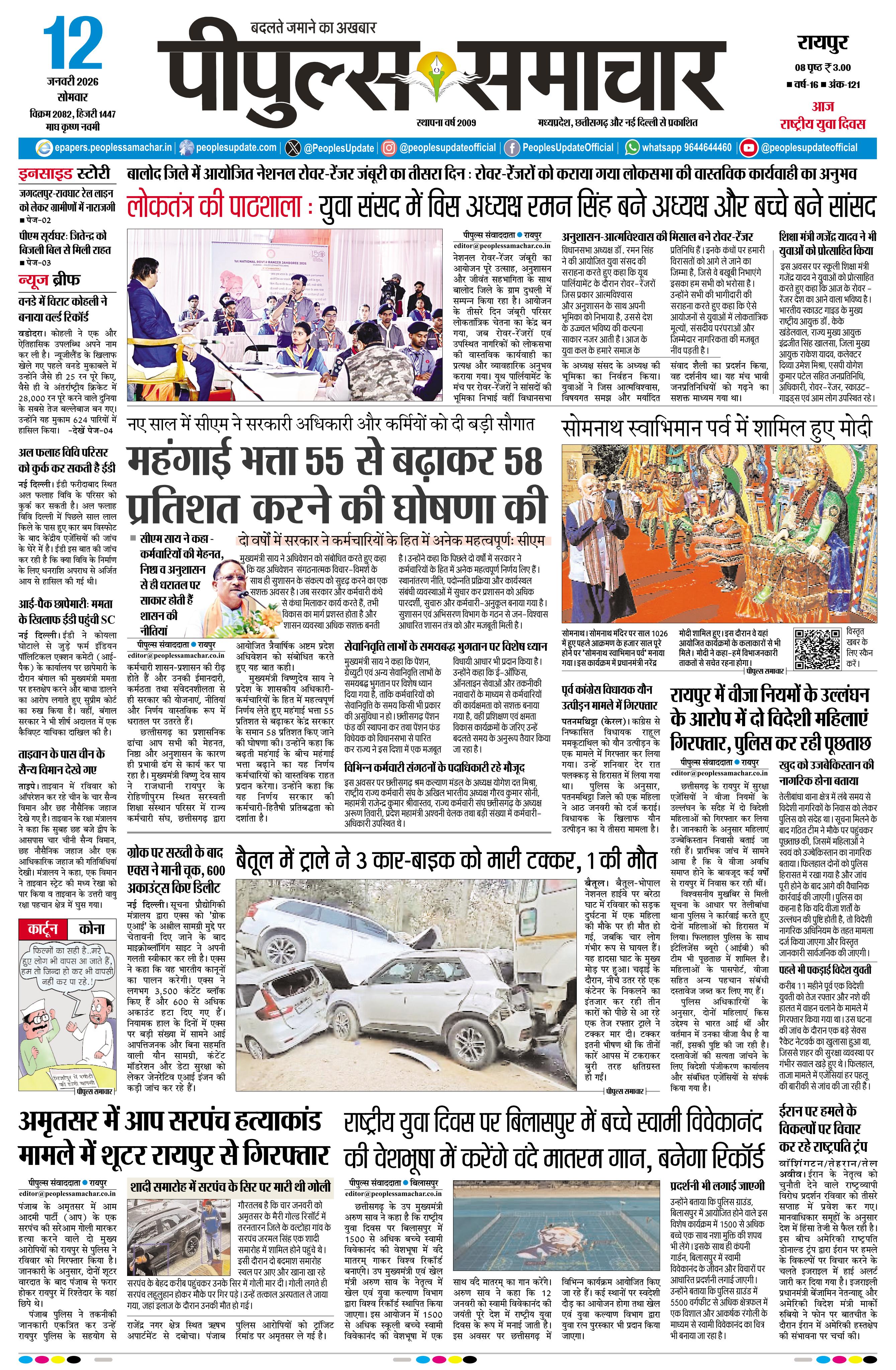 रायपुर January 12, 2026 << First << 1 >> Last >> Page 1Page 2Page 3Page 4Page 5Page 6Page 7Page 8 × रायपुर << First << 1 >> Last >> Page1Page2Page3Page4Page5Page6Page7Page8 Page1