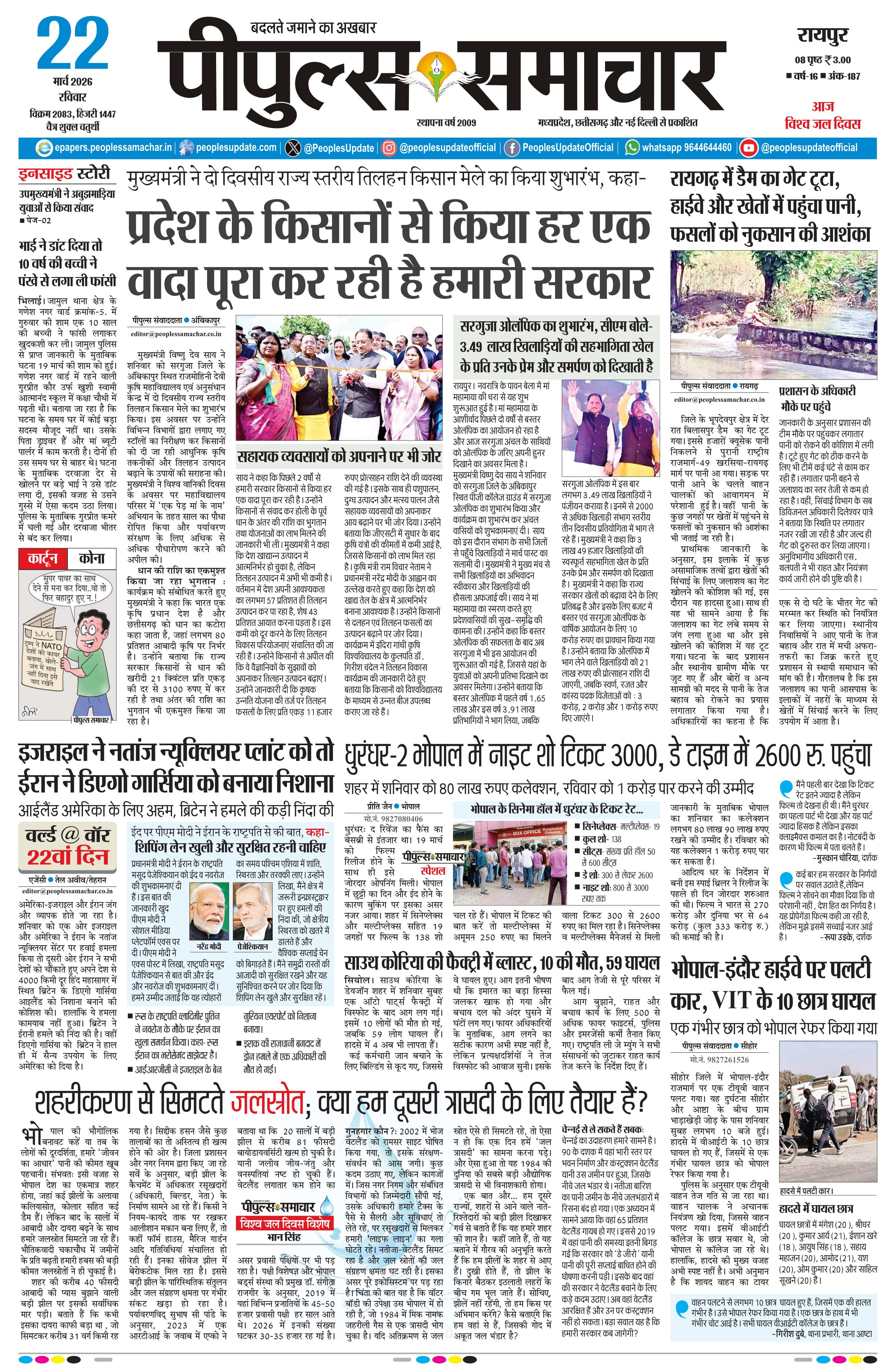 रायपुर March 22, 2026 << First << 1 >> Last >> Page 1Page 2Page 3Page 4Page 5Page 6Page 7Page 8 × रायपुर << First << 1 >> Last >> Page1Page2Page3Page4Page5Page6Page7Page8 Page1