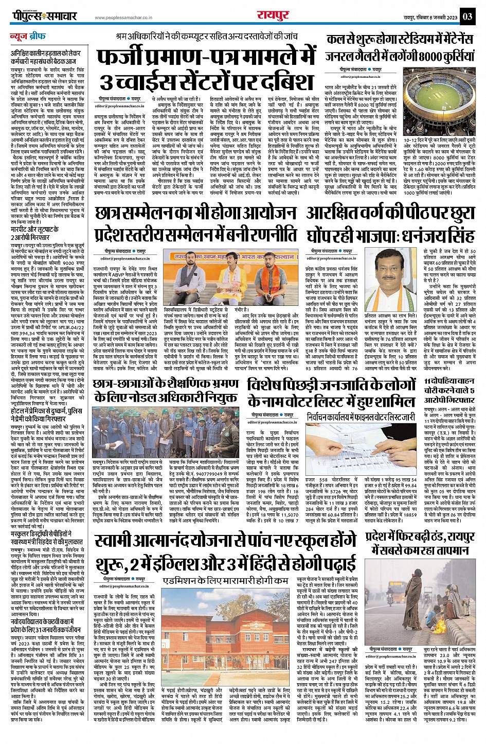 रायपुर Page: 3 January 08, 2023 << First << 3 >> Last >> Page 1Page 2Page 3Page 4Page 5Page 6Page 7Page 8 × रायपुर << First << 3 >> Last >> page1page2page3page4page5page6page7page8 page3